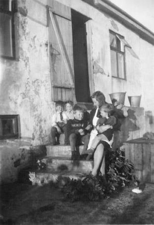 Á tröppunum í Réttarholti í Garði: Eiður Svanberg Guðnason, Ingigerður Þórey Guðnadóttir, Rúnar Guðmundsson í Réttarholti og móðir hans, Kristín Magnúsdóttir. Kristín heldur á Guðmundi Brynjari Guðnasyni.