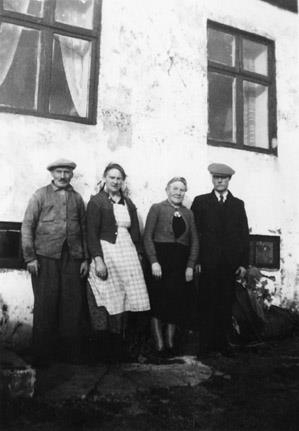 Fyrir framan Réttarholt í Garði. Frá vinstri: Hjónin í Réttarholti, Guðjón Björnsson og kona hans, Guðrún Guðmundsdóttir þá Guðný Björnsdóttir systir Guðjóns og Halldór sonur hennar.