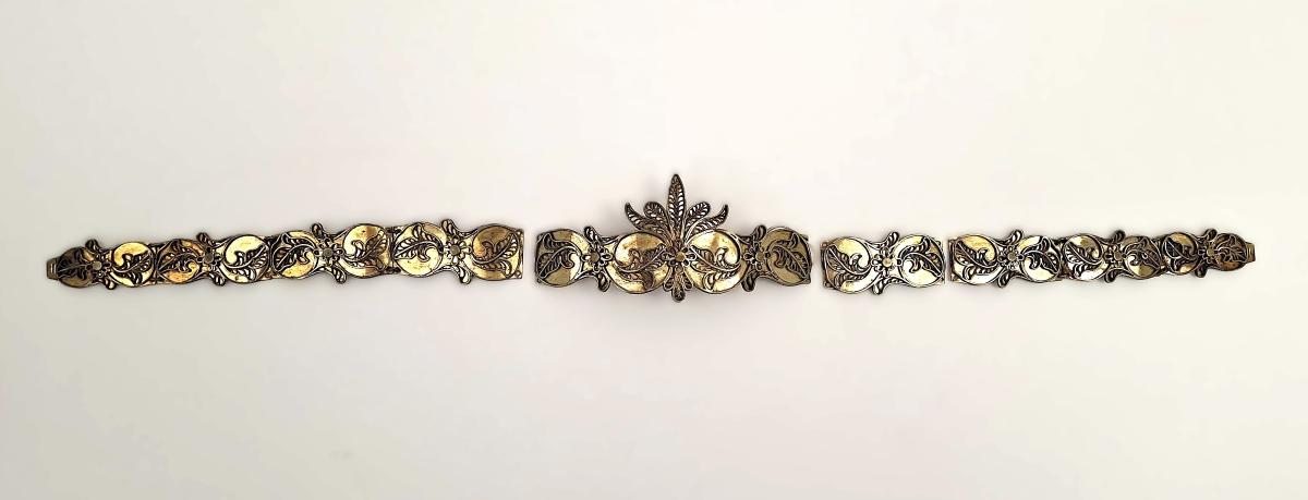 Beltið er nú í þremur hlutum, en hefur upphaflega verið 47 cm langt og breiðast hlutinn er 5 cm.