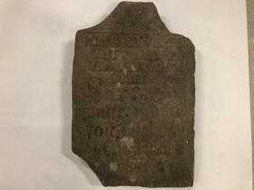 Legsteinn, sem kom úr vegg gamallar byggingar á Hjalla í Ölfusi fyrir nokkrum árum. Brotið er neðan af steininum. Á hann er letrað m.a. „Kristur er mér lífið, dauðinn er mér ávinningur.“ Um 1840 kom Jónas skáld Hallgrímsson á ferðum sínum að Hjalla og sá steininn þá í kirkjugarðinum og tók upp letur hans.