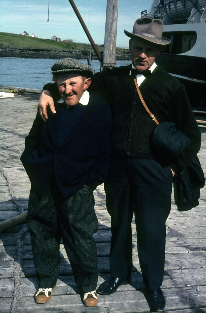 Flatey á Breiðafirði. Tveir menn standa á bryggju. Leopold, alltaf kallaður Poldi. Bjó á Hellissandi og Þorvarður Eggertsson. 1968