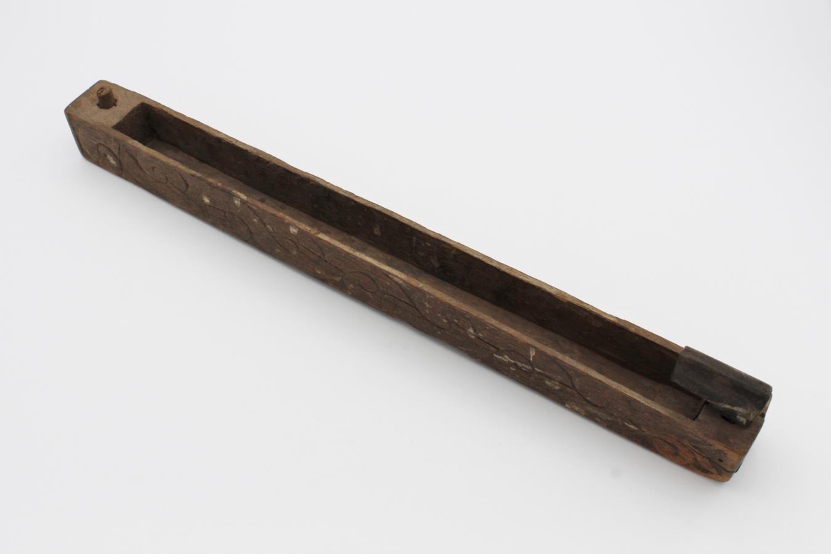 Prjónastokkur loklaus, útskorinn á hliðunum. Frá Urriðafossi í Villingaholtshreppi.