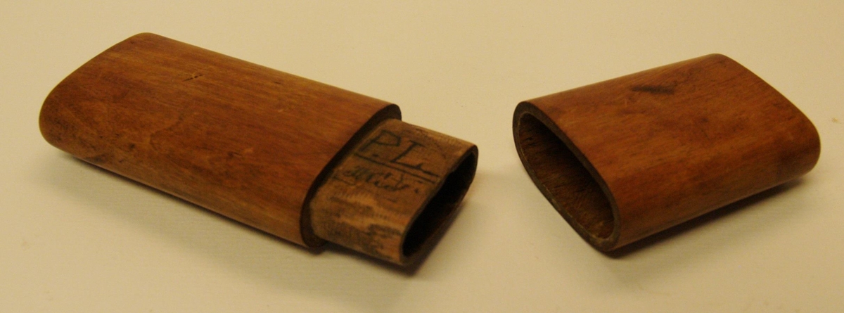 Gleraugnahús úr tré, birki sennilega, brúnbæsað. Innan á lokið er skrifað með bleki P.L. Hlíð. Smíðað er Lýður var orðinn háaldraður. Eitthvert barna Páls hafa gefið safninu. Á hulstrinu eru tveir, litlir, skornir krossar.