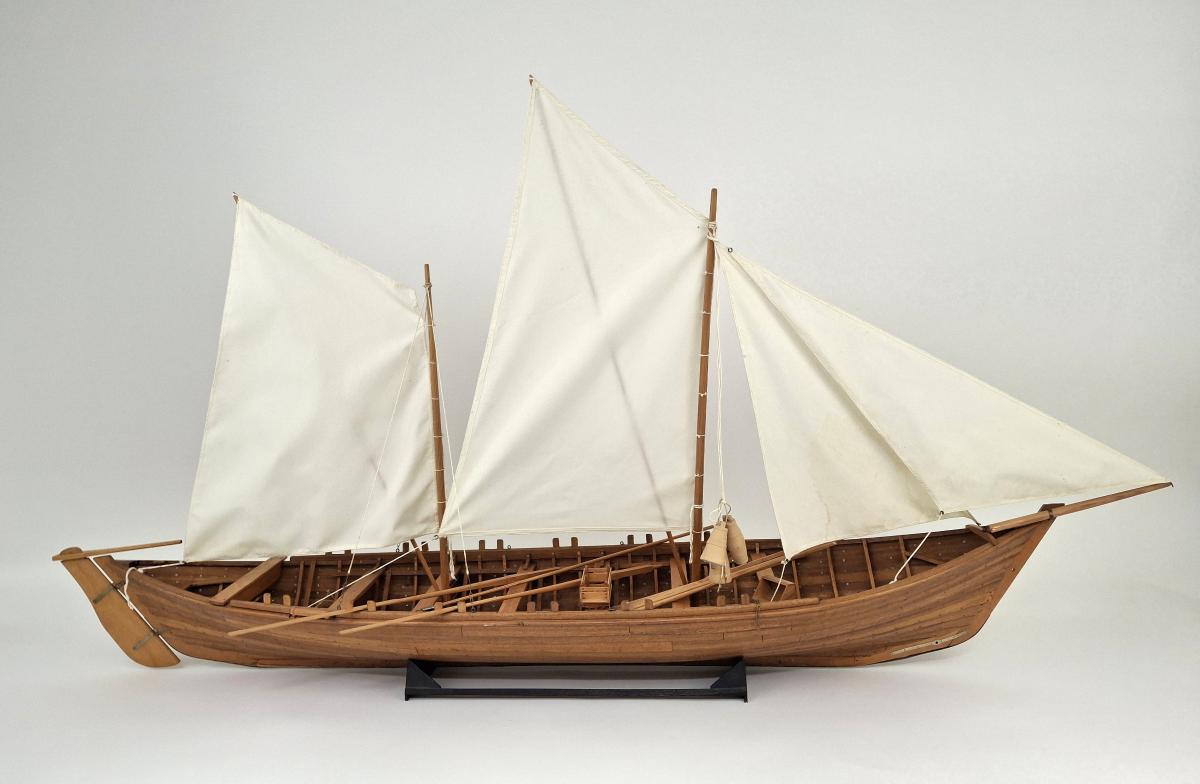 Líkan af Farsæl gert af Kristni Jónassyni organista og rafvirkja á Eyrarbakka. Árar, austurtrog, bátstjaki og flot fylgja.