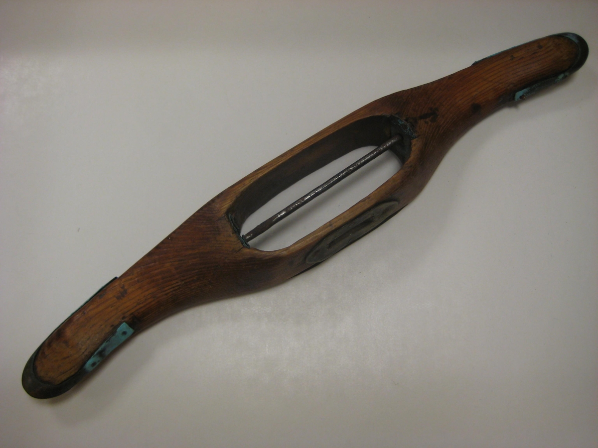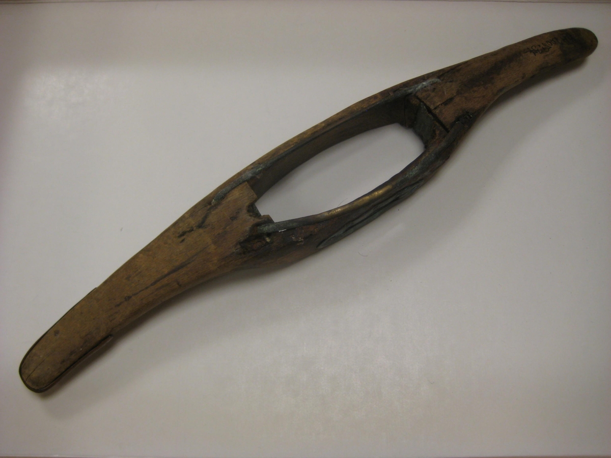 Tvær skyttur lengdin er 34,0 cm, opið í miðjunni er 10,0 cm langt og 4,5 cm breitt. Járnpinni er í miðjunni á annarri og er spil utan um járnið, en vantar á hina.