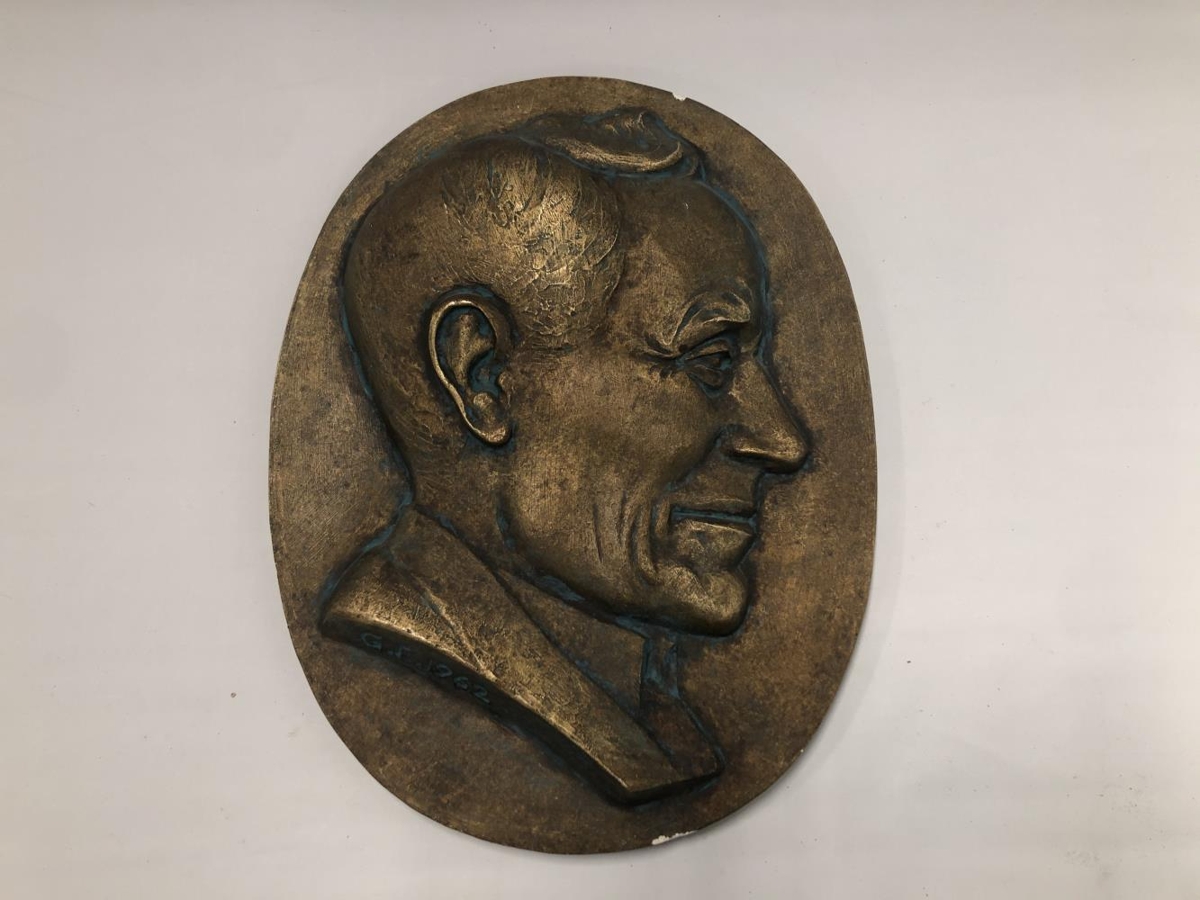 Bronsuð lágmynd af Sigfúsi Þ. Öfjörð, bónda á Lækjamóti í Sandvíkurhreppi. Fæddur árið 1892 og dáinn 1963. Sigfús var einn af forvígismönnum Árnesinga í ræktun og vélvæðingu landbúnaðarins. Árið 1943 réðst hann í það, fyrstur íslenskra bænda, að kaupa jarðýtu til ræktunarstarfa og vegagerðar. Sigfús kom við mörg fleiri framfaramál landbúnaðarins. Í minningu hans fengu vinir hans og sveitungar Guðmund frá Miðdal til að gera þessa mynd af Sigfúsi.