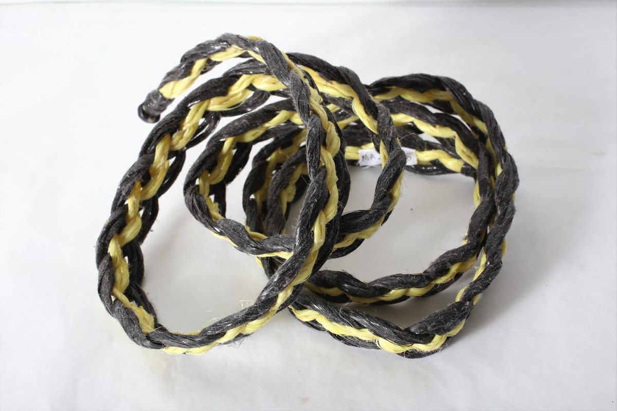 Reipi fléttað úr gulu og brúnu plasti. Úr búi mæðginanna Aðalheiðar Sigurðardóttur og Karls Jónssonar á Galtastöðum fram í Hróarstungu.