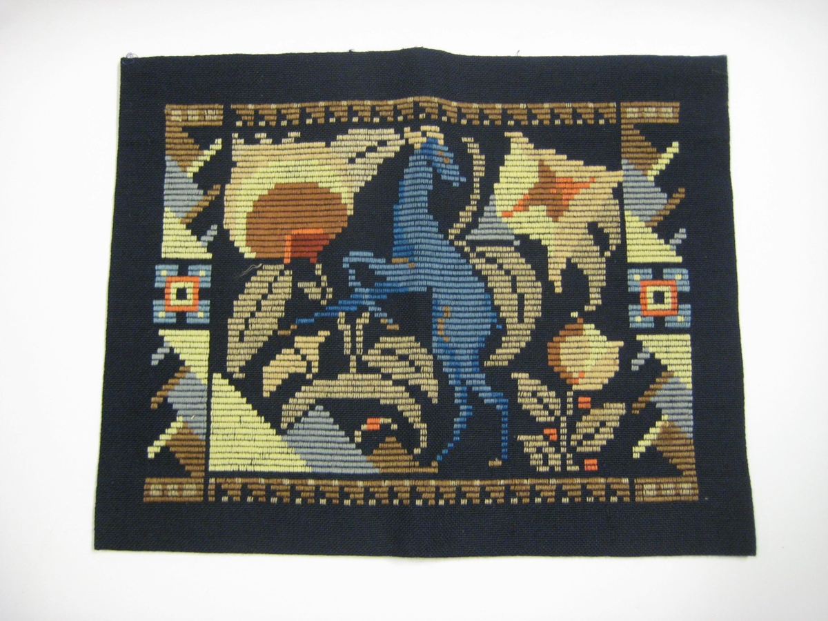 Saumað á „Karólínugjafa“ með gobelinspori. Guðný Friðbjarnardóttir var alin upp í Hrísey en fædd að Kaðalstöðum í Fjörðum. Hún fór snemma að vinna fyrir sér m.a.á Hjalteyri og eignaðist snemma saumavél. Giftist að Klausturhólum í Grímsnesi, móðir gefanda.