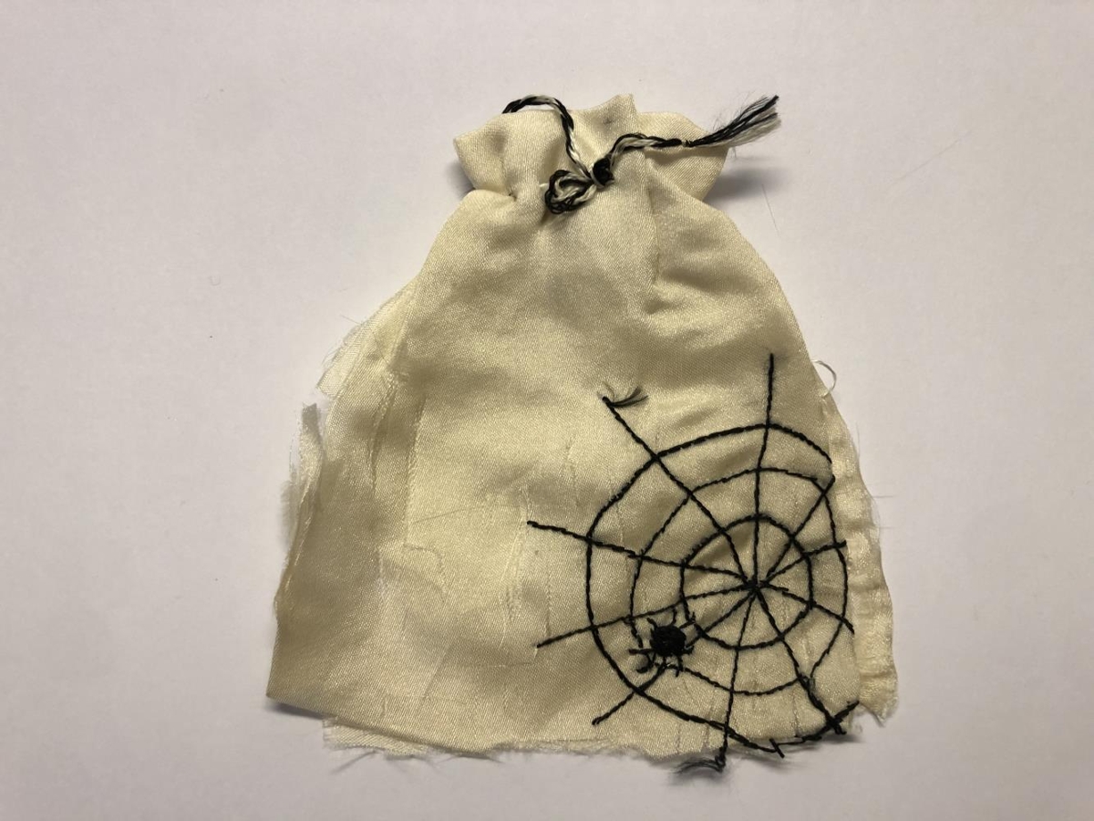 Öskupoka sendir Arnold. Handsaumaðir úr hvítu silki og ísaumaðir með svokölluðu „Flokk-silki“. Með kögri og stundum dúskum. Fallega dregnir saman. Kóngulóarvefur með kónguló í.