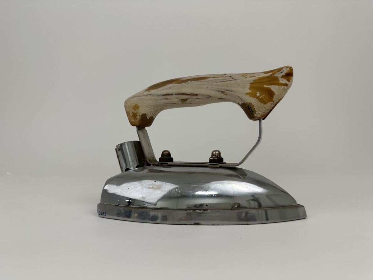 er skrúfaður járnteinn með áfestu tréhandfangi. Tréhandfangið hefur verið