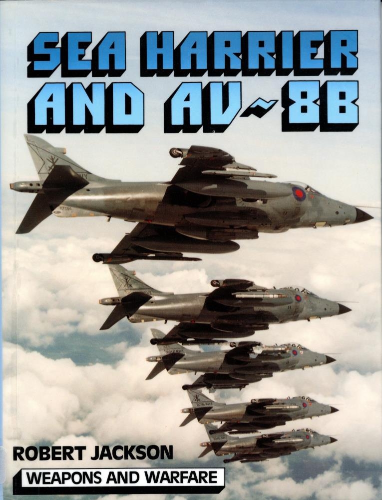 Sea Harrier flugvélar í máli og myndum. Á fyrstu opnu er bókin merkt Hauki Stefánssyni með stimpli þar sem kemur einnig fram heimilisfang og stimpill frá Héraðsbókasafni Skagfirðinga
