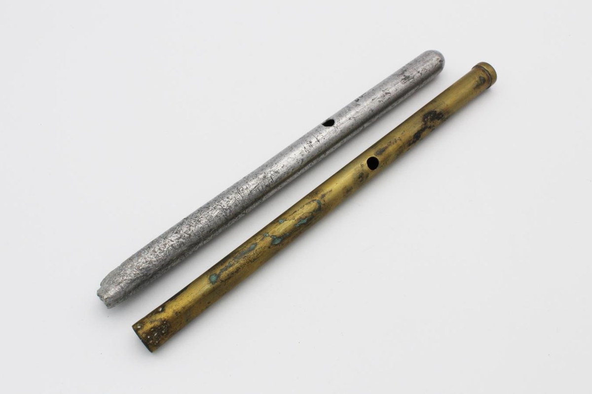 voru til að gefa kindum inn ormalyf. Tvö hylki, annað er úr messing og