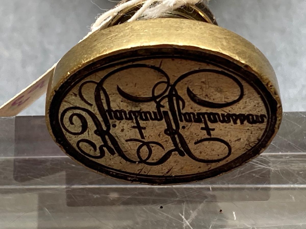 Innsigli sr. Kjartans Kjartanssonar á Staðarstað (1868-1945). Innsiglið er úr kopar og með renndu tréhandfangi. Á það er letrað með skrifletri: Kjartan Kjartansson.