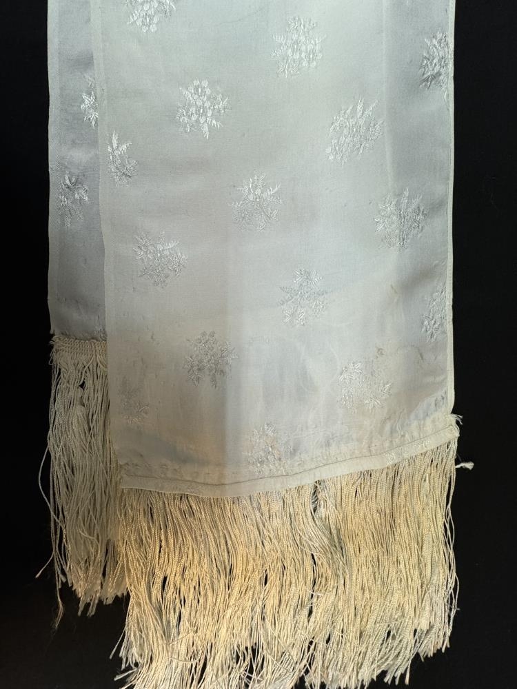 á slifsinu án kögurs 138 sm br 20 sm. Slifsið er gamalt en vel með farið.
