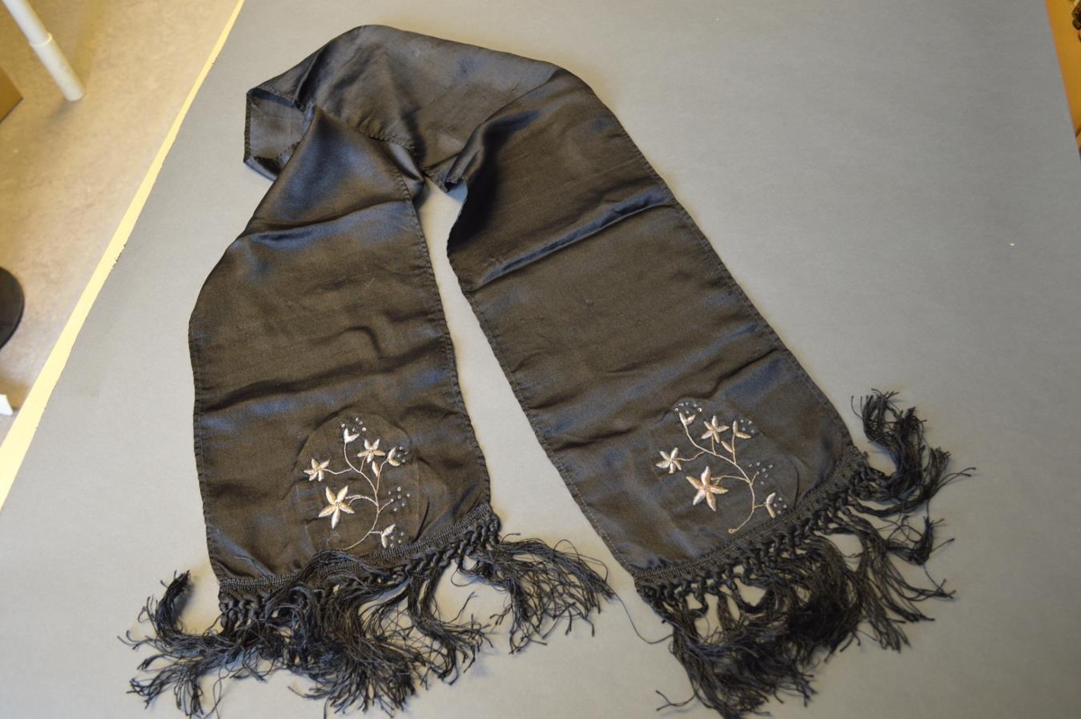 Peysufataslifsi Helgu Pálsdóttur, svartur silkiborði, baldýraður og kögraður.