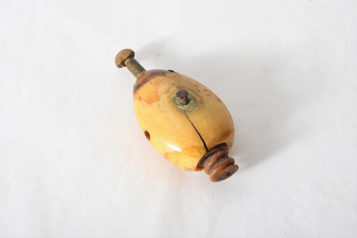 Lítil og ljós tóbaksponta úr beini. Fannst í Finnsstaðaseli í kringum árið 1960.