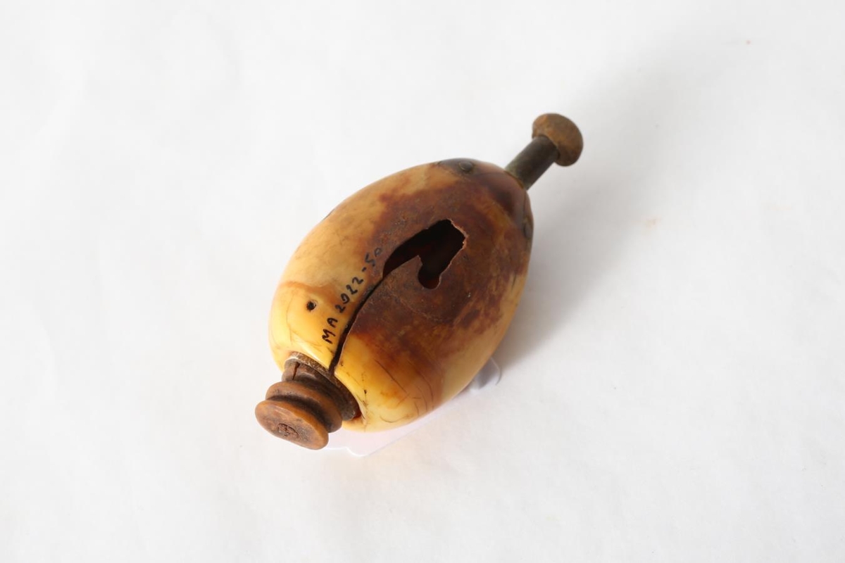 Lítil og ljós tóbaksponta úr beini. Fannst í Finnsstaðaseli í kringum árið 1960.