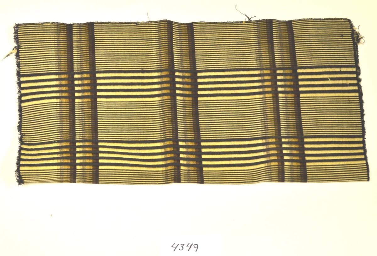 Bútur úr salúnsofnu teppi. Ofið af gefanda, Ragnheiði Ágústu Túbals, fyrir 1930 en fyrirvaf spunnið af móður hennar, Guðbjörgu Þorleifsdóttur.