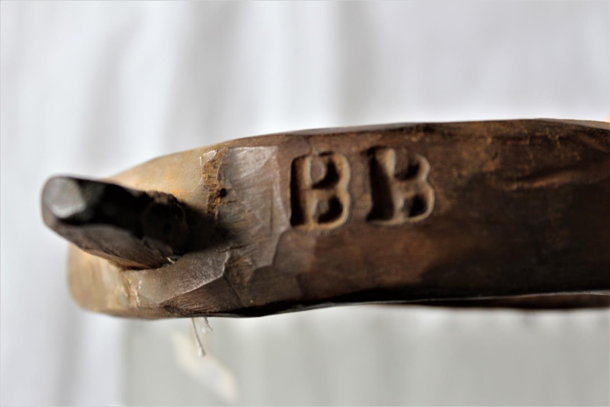 Gift hornhögld, brennimerkt BB = Brandur Brandsson. Gripir gefnir af frú Ingveldi Tómasdóttur í Presthúsum í Mýrdal.