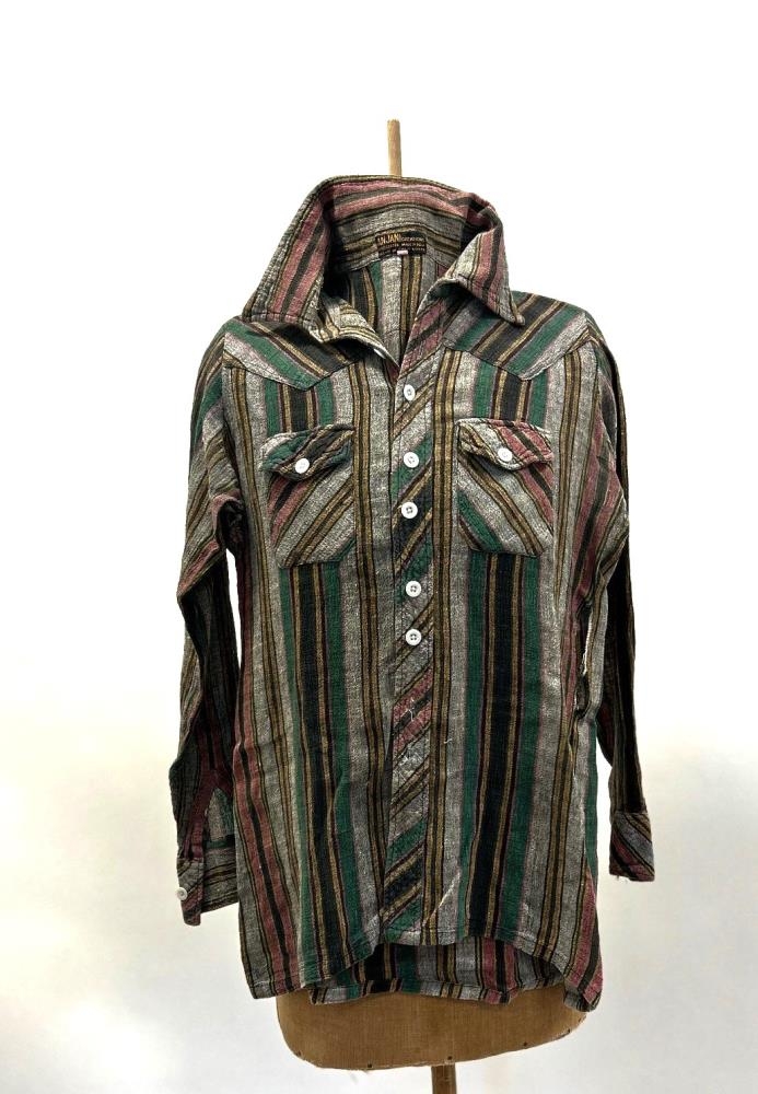 Kvenskyrta úr krumpuðu bómullarefni, "hippaskyrta", röndótt.
