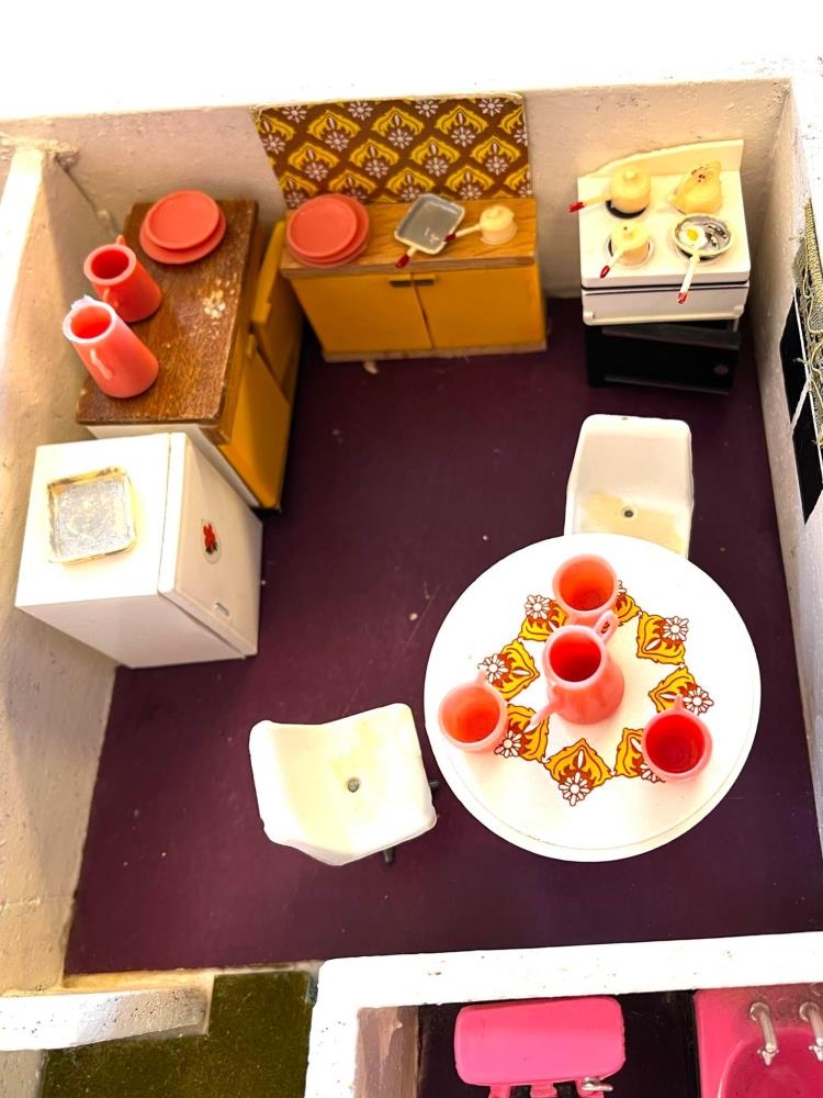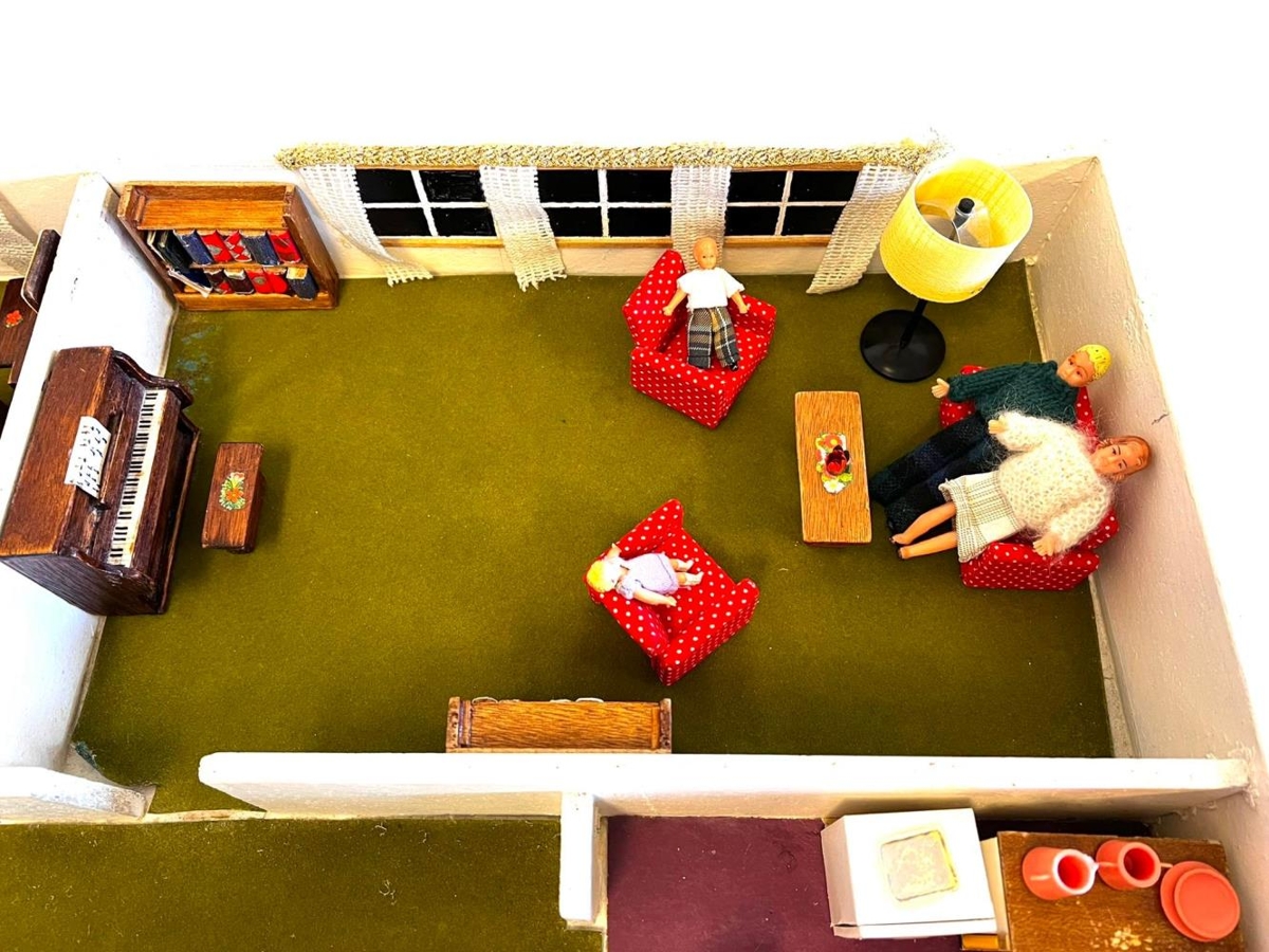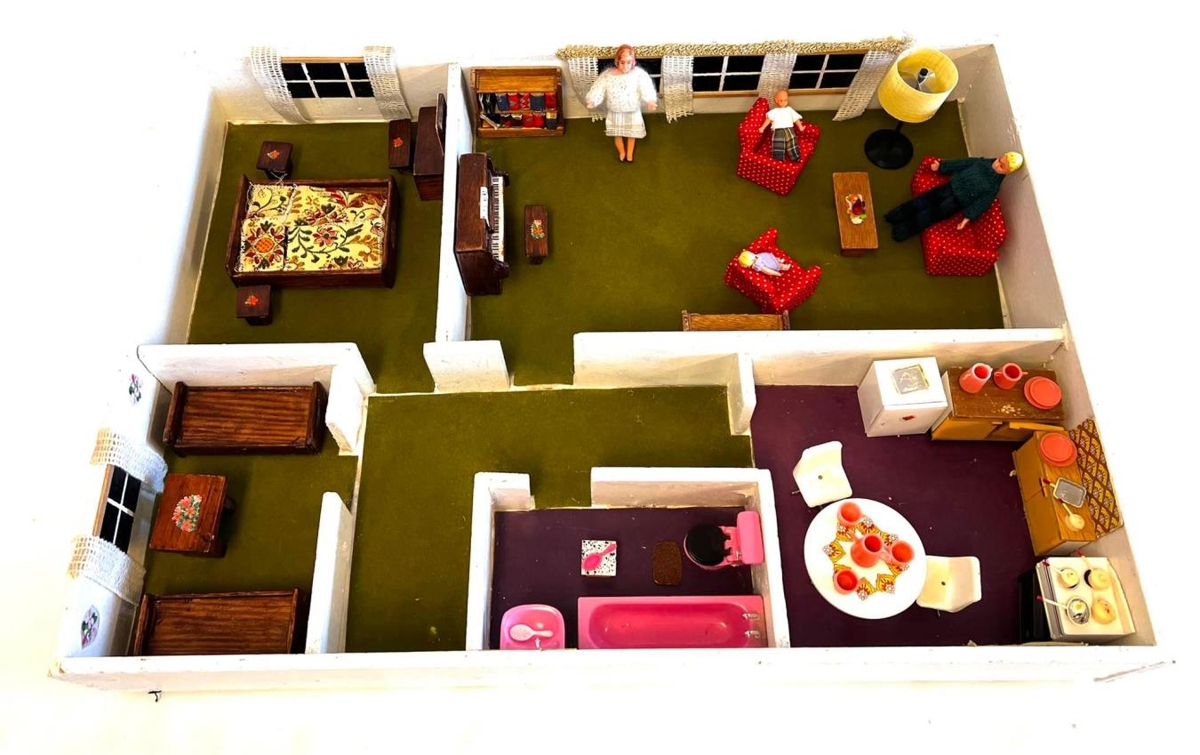 Dúkkuhúsið er hannað af Bárði Ísleifssyni arkitekt (f.1905-d.2000) um 1980. Bárður var fæddur 21. október 1905 að Glerárgötu 7. Það var gert fyrir sonardætur hans Margréti Maríu Leifsdóttur og Ingu Maríu Leifsdóttur. Í húsinu bjuggu hjón með tvær dætur, eins og í fjölskyldu þeirra. Bárður smíðaði húsið og öll húsgögnin, nema plastið. Hann gerði bækurnar í bókahillunum og lagði teppin. Kona hans Unnur Arnórsdóttir gerði gardínur ogsaumaði rúmföt og föt á brúðurnar. Brúðufötin eru týnd og gerði Margrét María ný föt til að dúkkurnar væru ekki berar. Húsgögn í dúkkuhúsinu og litaval og munstur ber glöggt vitni um tísku þess tíma er það var gert.