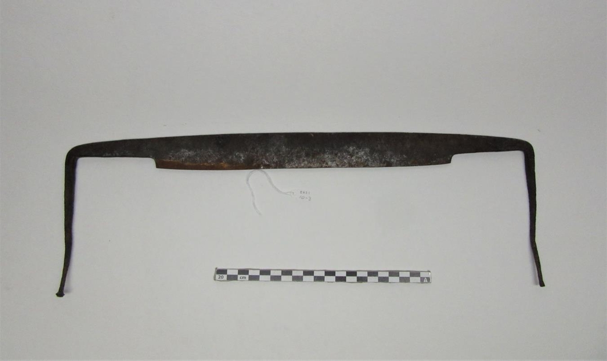 Hófjárn/skafa í góðu ásigkomulagi, á hana vantar þó tréhöldin.