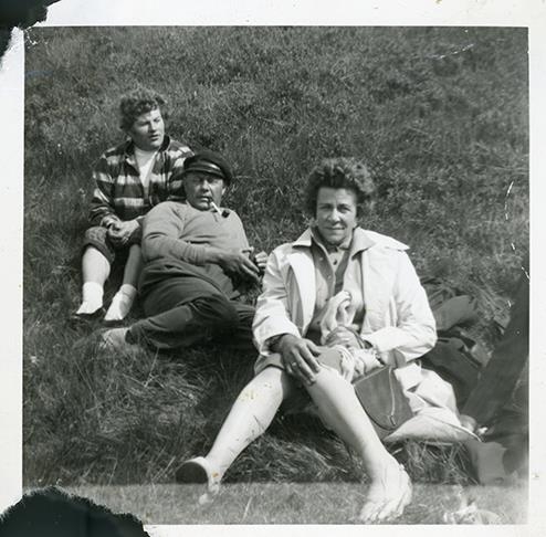 Félagskonur í kvenfélaginu Gefn í Garði á ferðalagi, líklega á kvenréttindadaginn 19. júní. Efst er Marta Guðrún Halldórsdóttir frá Bjarmalandi í Garði, þá Óskar rútubílstjórinn og Halldóra Jóna Valdimarsdóttir frá Bjargi í Garði.