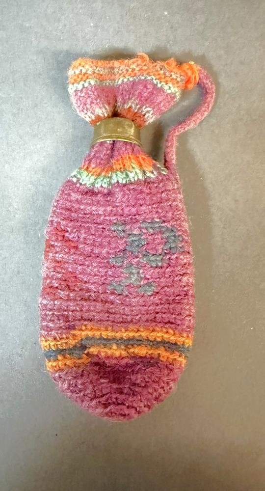 Peningapoki, prjónaður. Er með fangamarki Páls Árnasonar, föður Láru á Syðra-Rauðalæk (d. 1967). Hringurinn, sem lokað er með, er af látúnsskúfhólki.