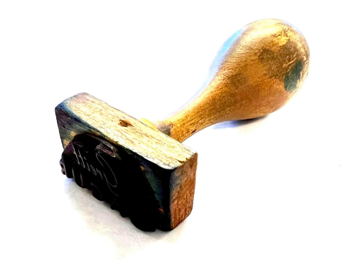 Stimpill. Notaður til að stimpla reikninga dagblaðsins Dags á Akureyri. Stendur á stimplinum ,,Dagur - Greitt,,