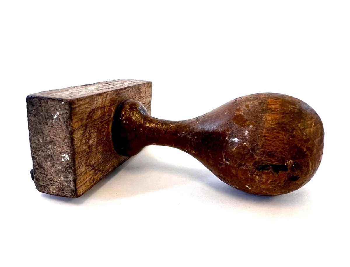 Ferkantaður stimpill með áletruninni Sóknarpresturinn - og svo virðist vera undir - í - ... svo gæti gúmmíið hafa klofnað í tvennt og neðri hlutinn dottið af - það gæti hafa staðið Sóknarpresturinn í Laufási. Úr eigu séra Þorvaðar G Þormar, prests í Laufási Grýtubakkahrepp.