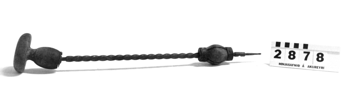 snúinn, 40 sm langur, á efri enda un stöngina er hnúður en í neri