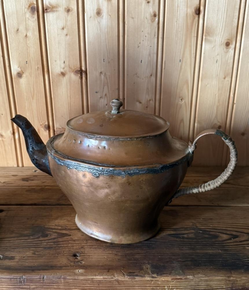 Kaffikanna úr eir, úr búi langafa gefanda, Jóns Þorsteinssonar á Eystri-Sólheimum. Komin frá strandi. Kannan er mjög stór og með miklum tinviðgerðum. Gefið af Guðrúnu Sigurðardóttur í Reykjavík.