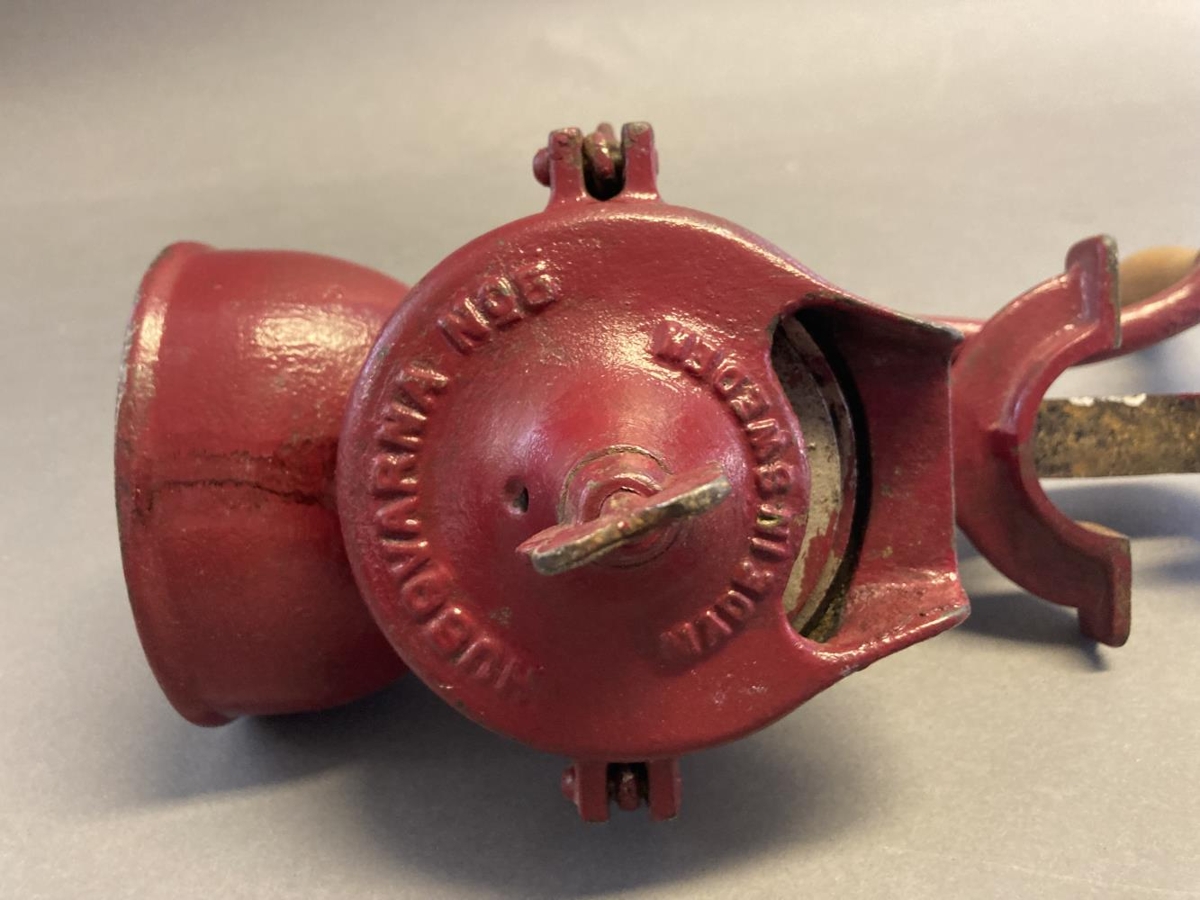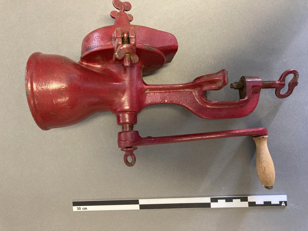 Kaffikvörn Ragnhildar Sigurðardóttur (f.1918 d. 2011) frá Sólheimakoti. Tegund Husqvarna no.5, framleidd í Svíþjóð, rauð að lit. Ragnhildur fékk kaffikvörnina frá foreldrum sínum, Þorgerði Erlingsdóttur og Sigurði Eyjólfssyni Högnasyni í Sólheimakoti í Mýrdal.
