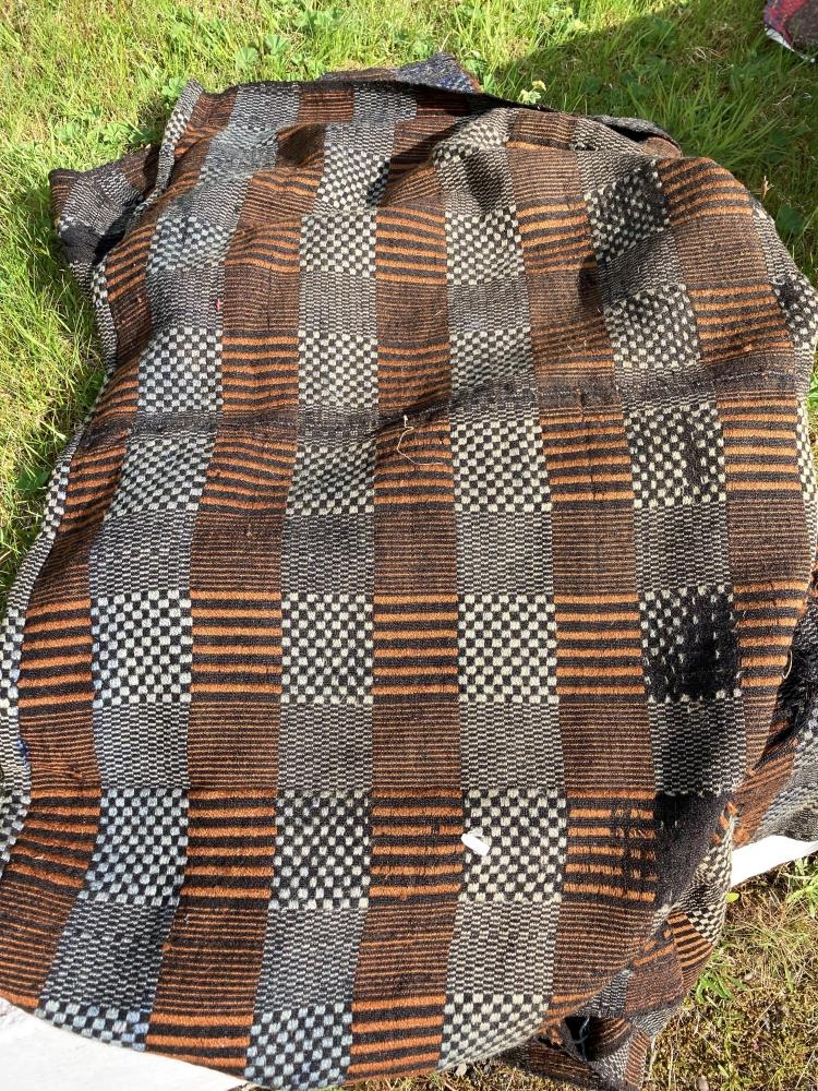 Salúnsofið teppi, mjög slitið, ofið af Jóni Egilssyni bónda á Selalæk, þá á Stokkalæk.