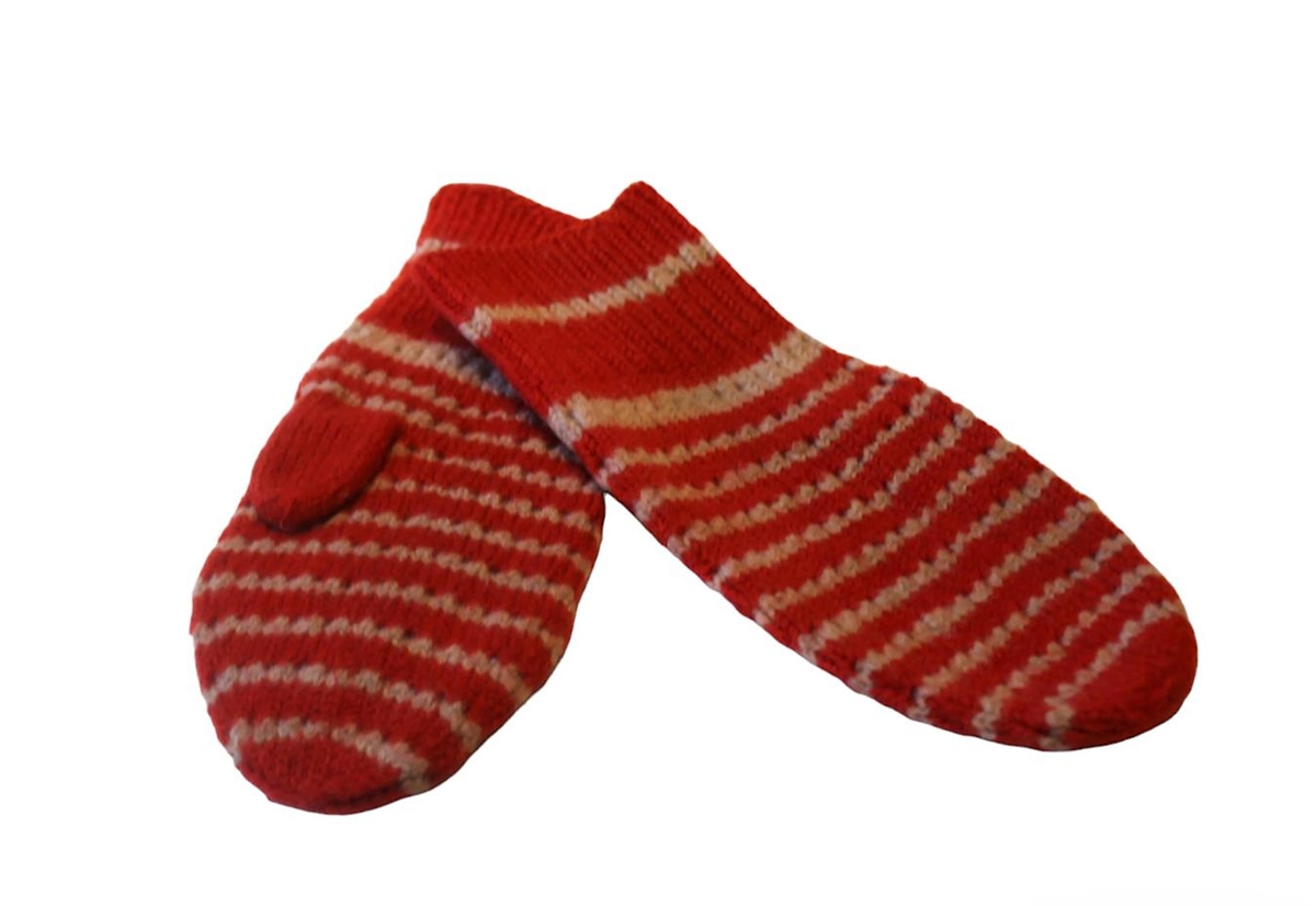 Rauðir barnavettlingar með hvítu munstri í.