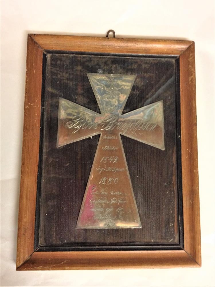 Grafskrift Björns Brynjólfssonar í Bolholti, silfurkross, innrammaður. Er með þessari áletrun: Hér hvílir Björn Brynjólfsson, fæddur 2. október 1849, deyði 28.Septmbr 1880. Sælir eru hjartahreinir, því þeir munu Guð sjá. Matth.5,.-8. Fremur óvandlega gert. Var áður í Keldnakirkju.
