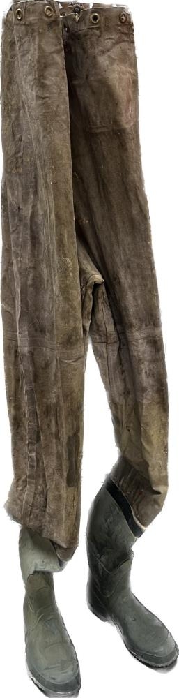 Grænar vöðlur, skór úr gúmmí en buxurnar úr e.k. dúk.