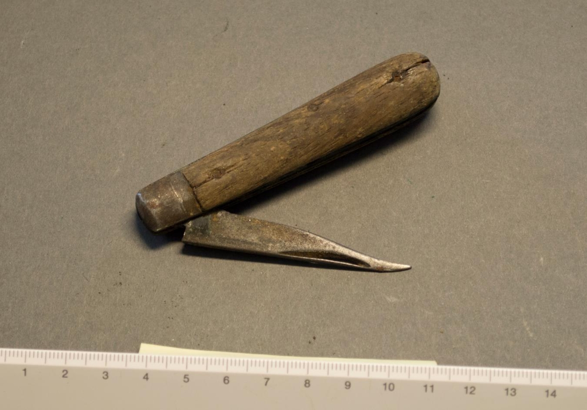 Vasahnífur. Gripir úr dánarbúi Guðrúnar Eyjólfsdóttur frá Fjósum í Mýrdal, flestir úr eigu þjóðhagans föður hennar, Eyjólfs Jónssonar.