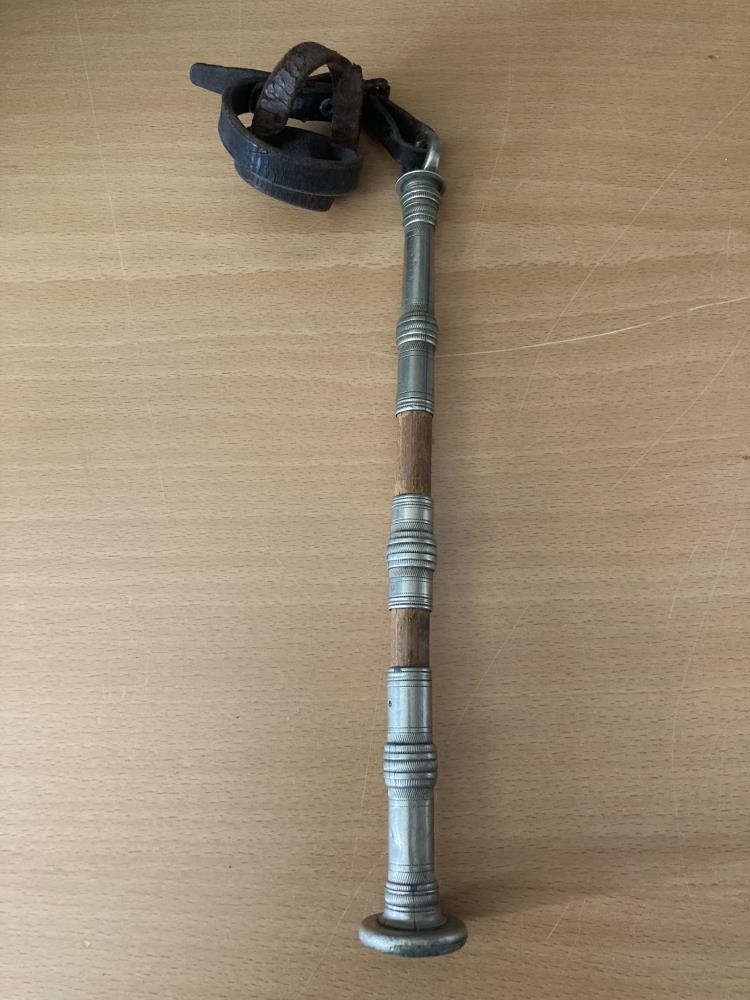 Svipa Guðrúnar í Fjósum, nýsilfurbúin. Hún er smíðuð af Jóni Þorsteinssyni kaupmanni í Vík. Gefið af Guðrúnu Eyjólfsdóttur frá Fjósum í Mýrdal, nú á Þingeyri við Skólaveg í Vestmannaeyjum (1973).