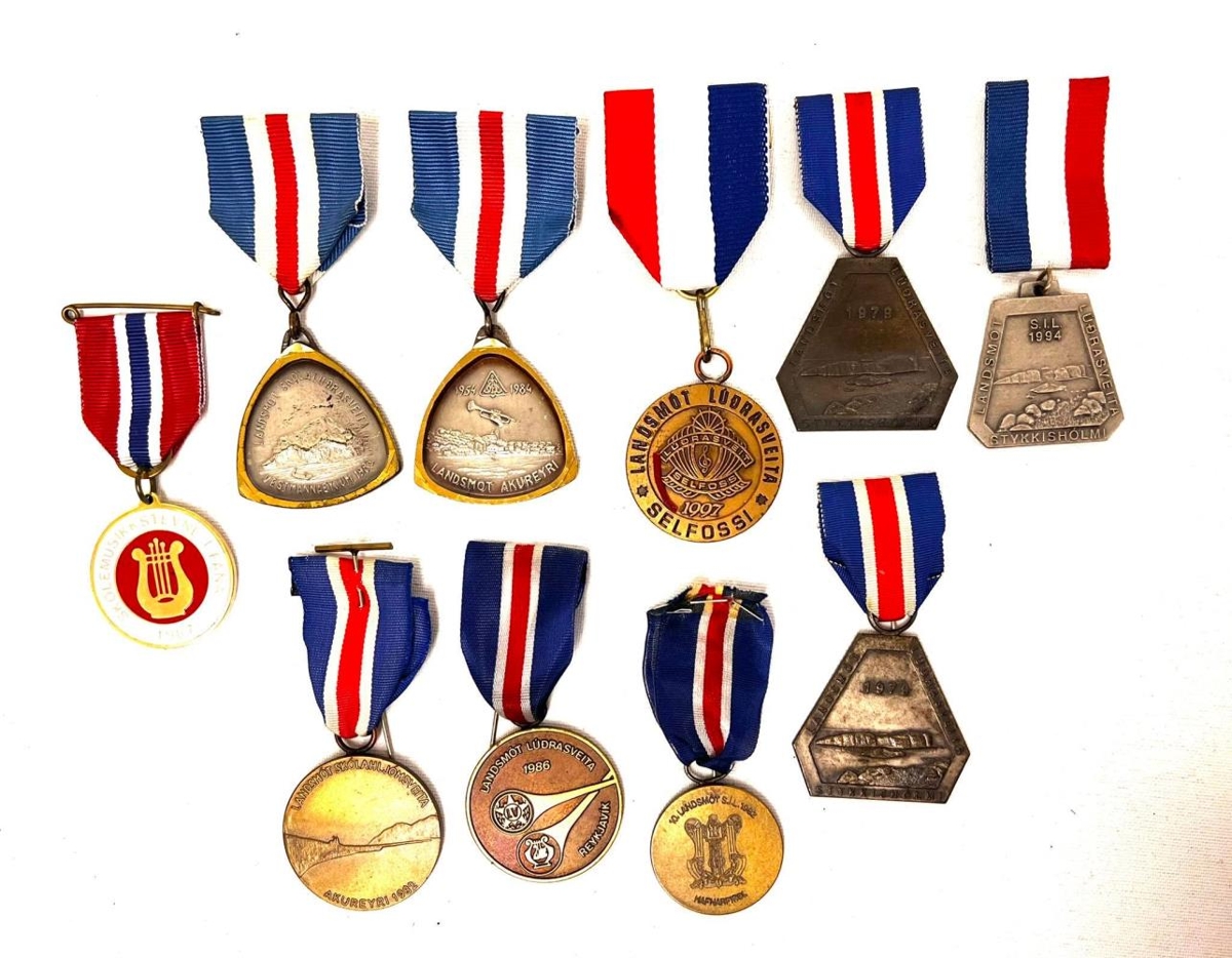Mótsmerki, verðlaunamerki frá ýmsum Lúðrasveitum.
