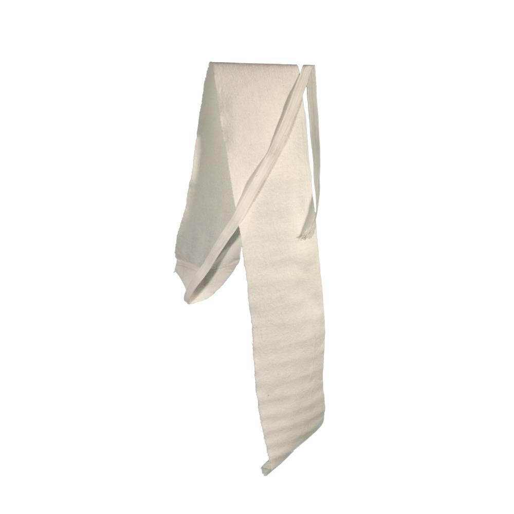 Naflabindi úr hvítu flónel. Bundið með bendlabandi.