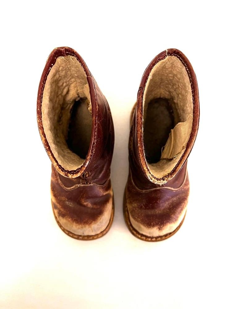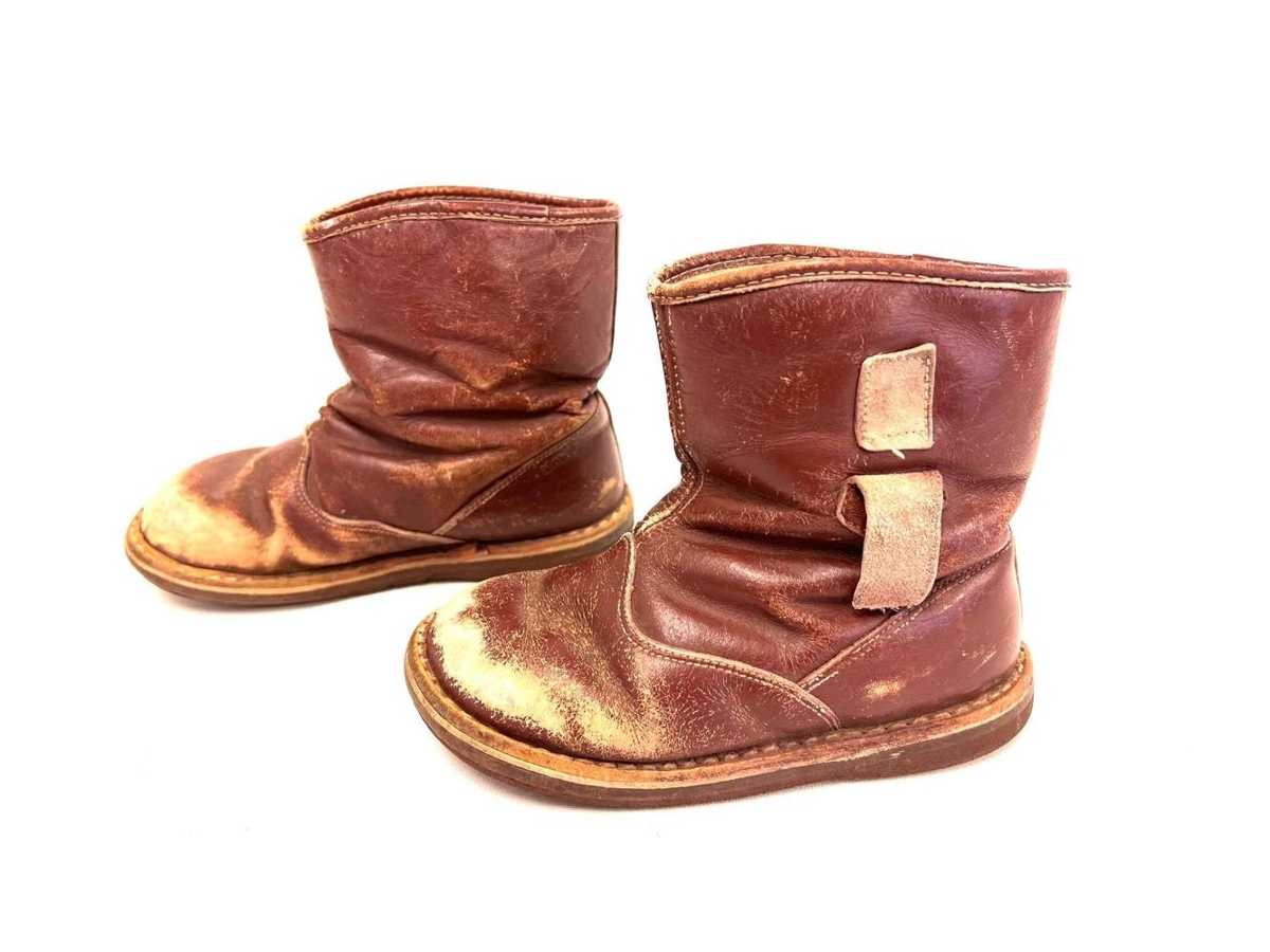 Vetrarskór, kuldaskór. Ljósbrúnt leður og hvítt loðfóður.