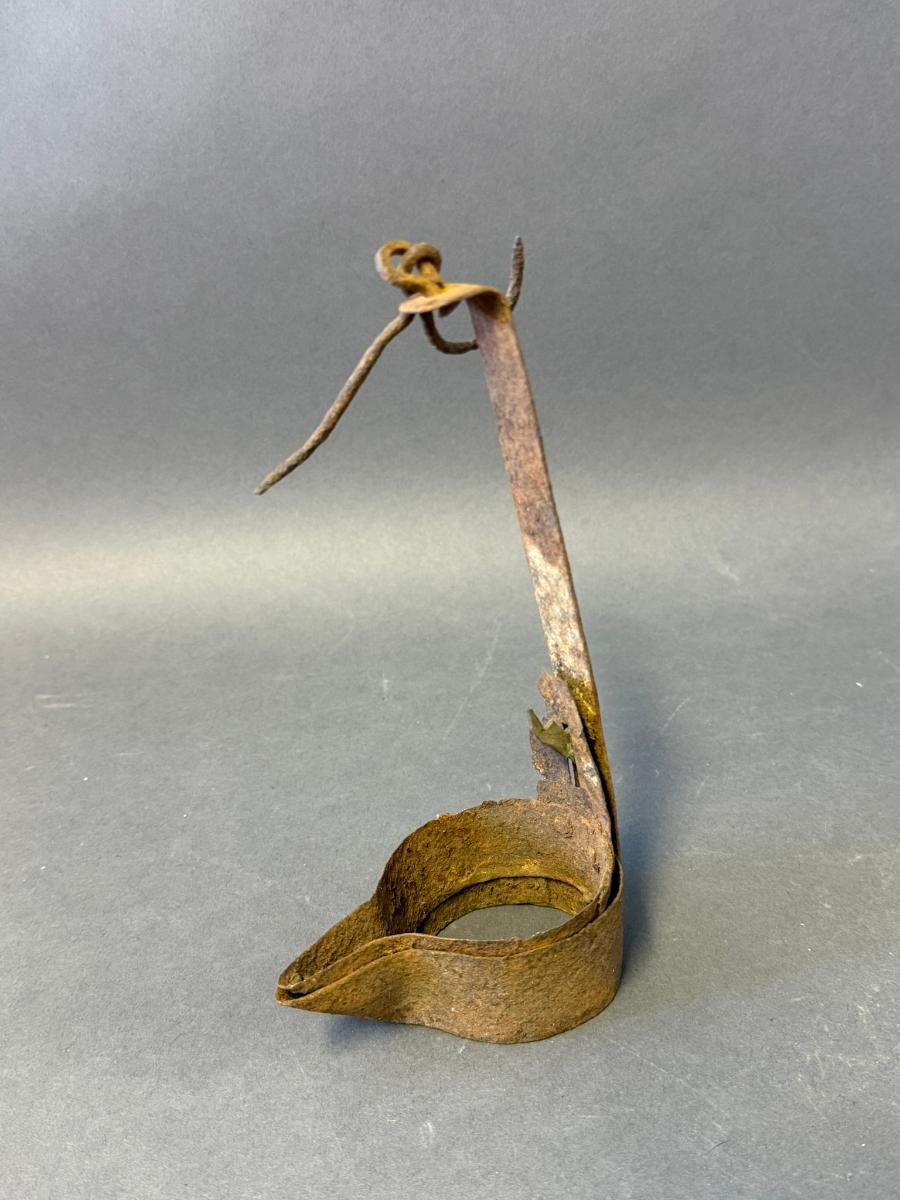 Lýsislampi úr járni, skálar og upphöld, en báðar skálar brottu, hengikrókur með haldi til að stinga í staf eða vegg. Stigi úr eir. Hæð 21,5 cm. Komið úr búi Oddgeirs Ólafssonar og Þórunnar Einarsdóttur í Eyvindarholti, síðar í Dalsseli.