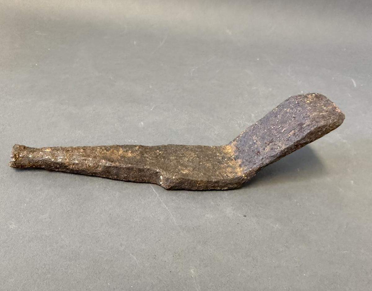 Óþekktur hlutur úr járni, járn flatlaga með hálfbeygju og egg á neðri enda, skaft eða hald að ofan. Efnismikill. Breidd fyriri munna 4,5 cm, lengd að hálfbeygju að meðar 8,5 cm, að ofan 16,5 cm. Komið úr búi Oddgeirs Ólafssonar og Þórunnar Einarsdóttur í Eyvindarholti, síðar í Dalsseli.