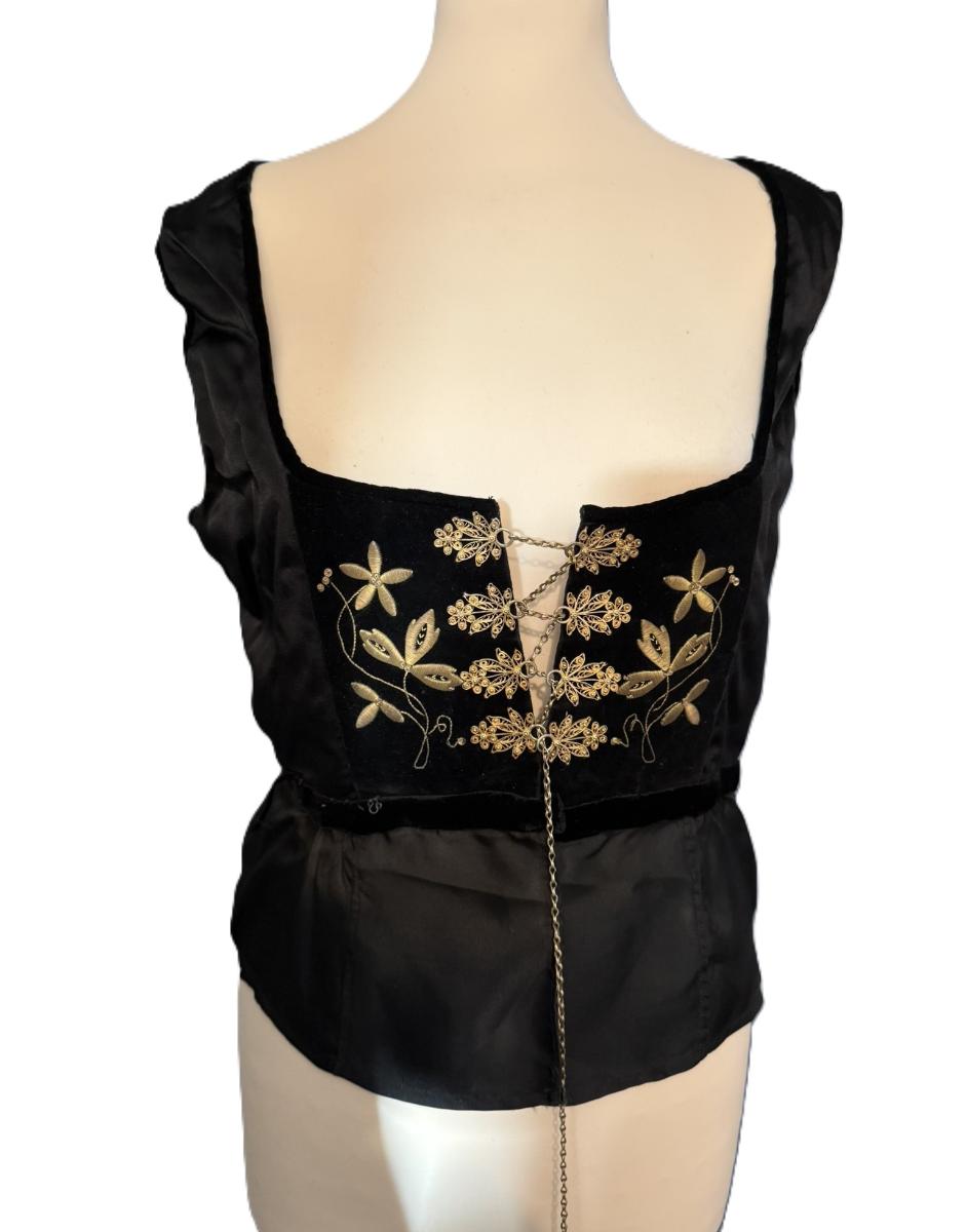 Upphlutsbúningur móður gefanda, Bjarnhildar Einarsdóttur frá Efra-Hólakoti undir Eyjafjöllum. Beltið er úr flaueli með gylltum silfurbúnaði. Beltispörin grafin (blóma og blaðskreyti), en beltið að öðru lagt skrautmillum. Millurnar á upphlutnum gyllt víravirki, festar á balderaðan borða. Búningurinn mun gerður úr silki, (peysufatasilki) en nánari greining verður síðar gerð. Silfurbúnaður virðist geta verið mismunandi gamall og vantar frekari fræðslu um hann, en ekki er neinn stimpil að sjá á honum.