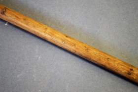Alinmál, kvarði, koparnegldur. Kvarði með danskri alinmælieiningu. Hann er 62 cm og með 24 þumlungum þar sem einn þumlungur er 2,8 cm.