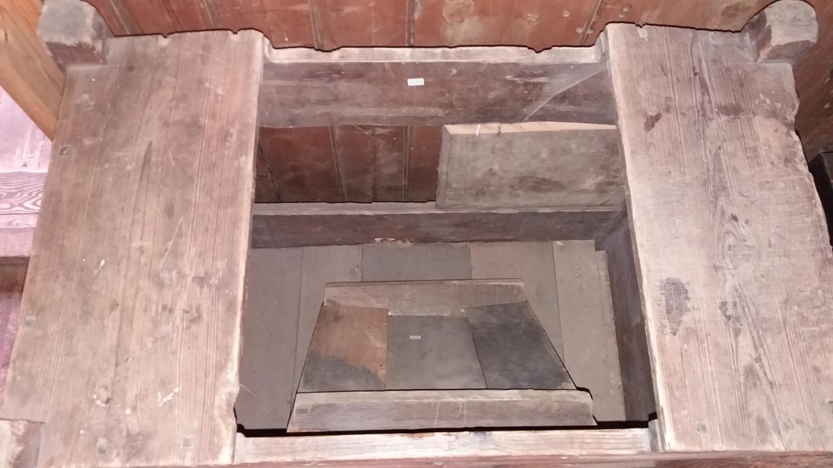 verið áður kornbyrða. Lok sett á af safnverði. Botnfjalir og bakfjalir