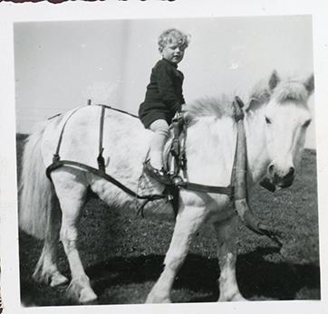 Þórður Kristinn Kristjánsson frá Vörum í Garði á hesti móðurforeldra sinna, Halldórs og Kristjönu í Vörum. Eins og sjá má á aktygjum hestsins, hefur hann varið notaður til að létta undir við búverkin.
