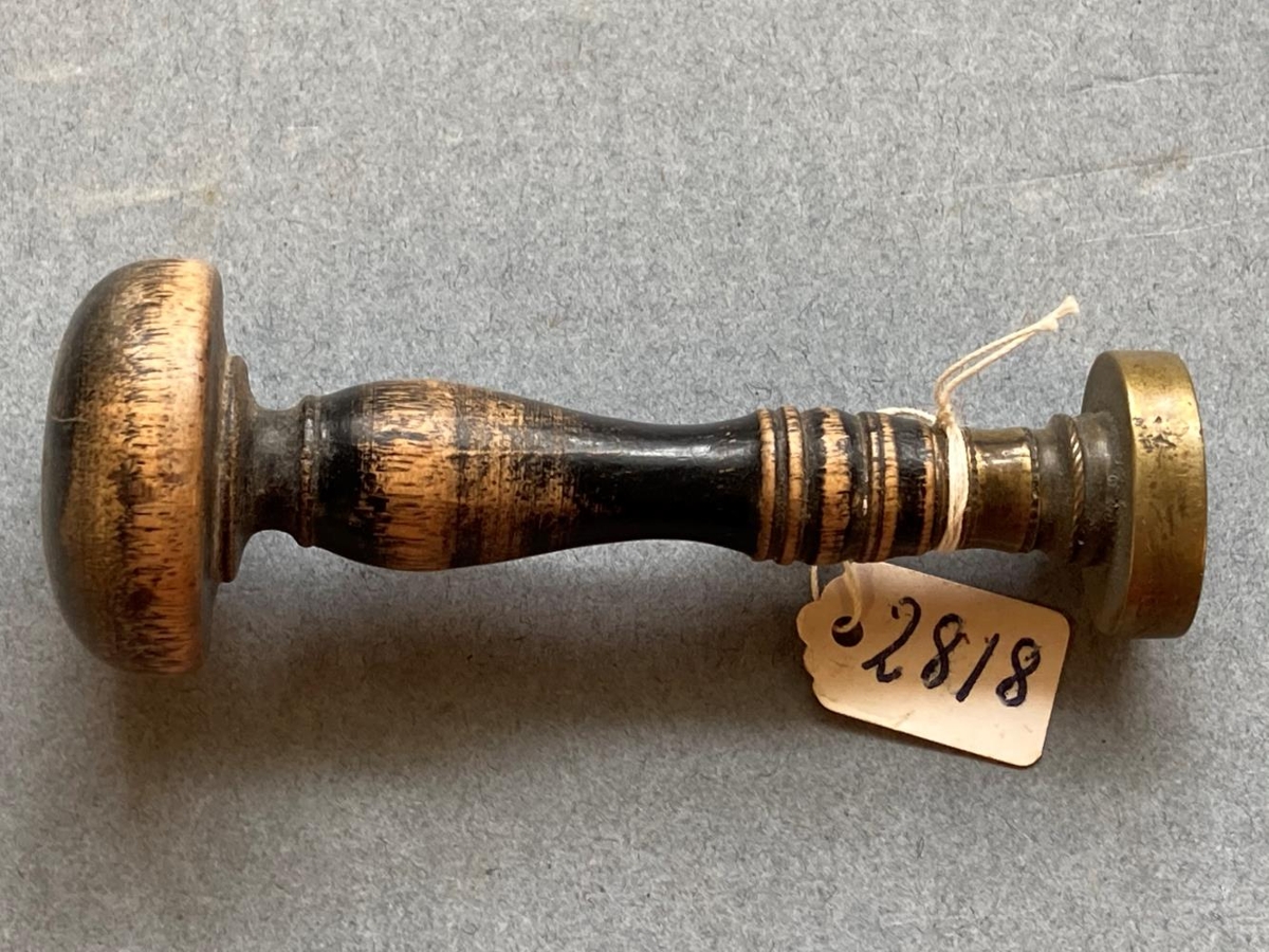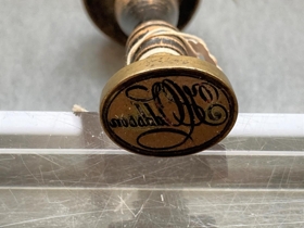 Signet Hjartar Oddssonar snikkara í Kirkjubæ, sporöskjulöguð koparstétt með renndu tréhandfangi. Áletrun: H Oddsson. Úr dánarbúi Sigríðar Hjartardóttur kennara frá Kirkjubæ.