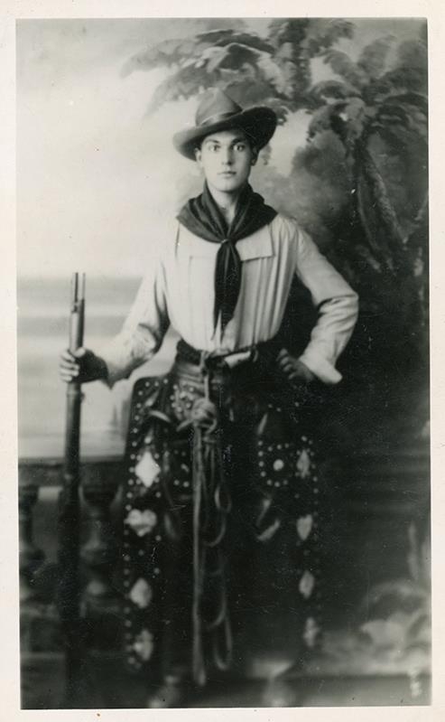 Kjartan Ásgeirsson frá Bjarmalandi í Garði um 17 ára gamall. Hér hefur hann brugðið sér í grímubúning fyrir myndatökuna, myndin er tekin í Tívolíinu í Kaupmannahöfn.